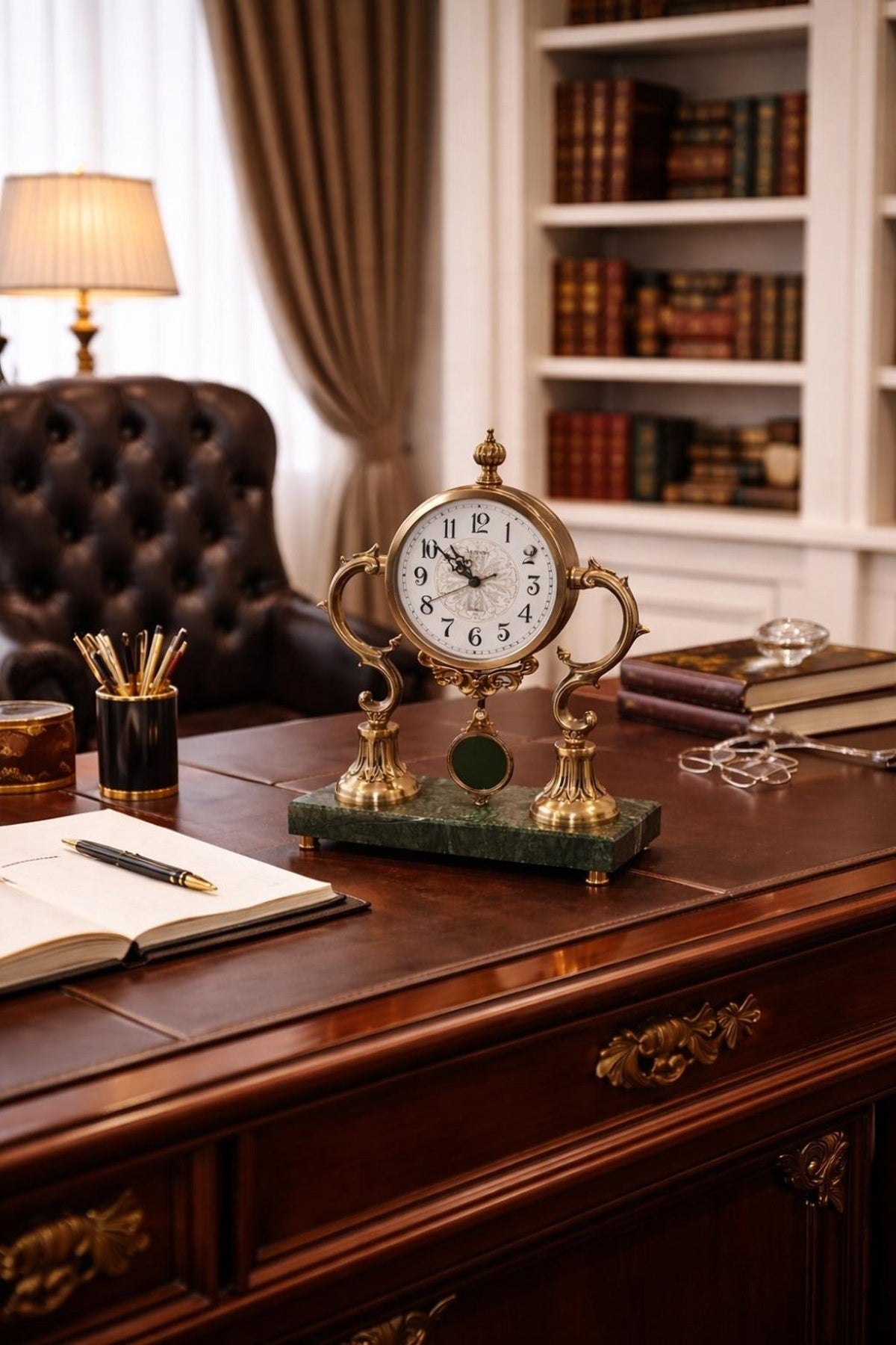 Ofis masası, çalışma odası, salon ve vitrin dekorasyonlarında premium bir görünüm oluşturur.