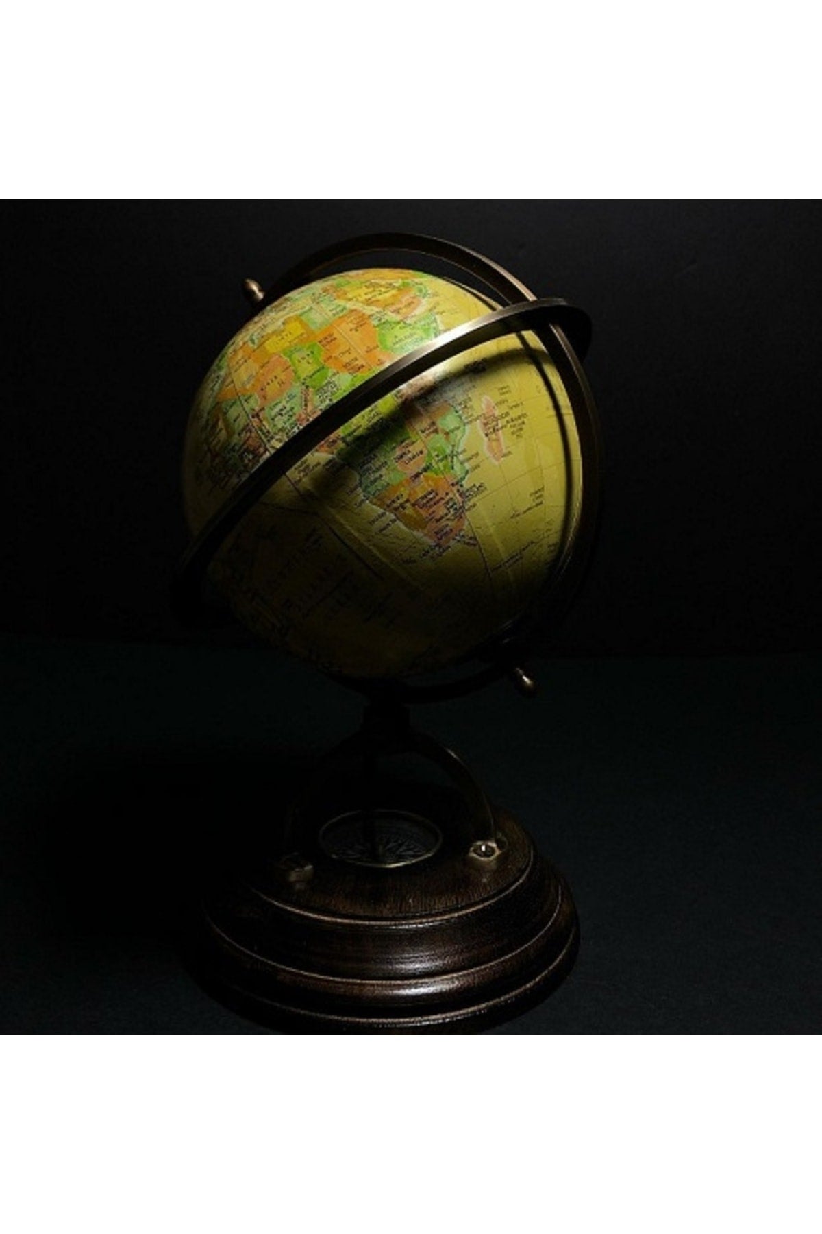 İlk örnekleri M.Ö. 6. yüzyıla dayanan ve dünyanın hala düz olduğu inancıyla çizilen dünya haritaları daha sonra Helenistik Dönem’le birlikte küre şeklinde çizilmeye başlanıyor. Bu dönemde coğrafya biliminde meydana gelen gelişmeler, Roma İmparatorluğu döneminde Batlamyus’un çizdiği dünya haritasına önayak oluyor ve bu harita Orta Çağ’ın sonuna kadar kabul görüyor. 15 ve 18. yüzyıllar arasındaki coğrafi keşiflerle birlikte, dünya haritaları gittikçe aslına daha uygun olmaya başlasa da, Afrika’nın iç kısımları ve Antarktika 19. yüzyıla kadar keşfedilemiyor. ? Özel Tasarım Pusulalı Pirinç İşleme Büyük Boy Retro Dünya Küre?? ? 24×14 cm Boyutlarında, Ahşap Kaideli ? Koleksiyonluk, Dekorluk, Kondisyonu Çok İyi Durumda